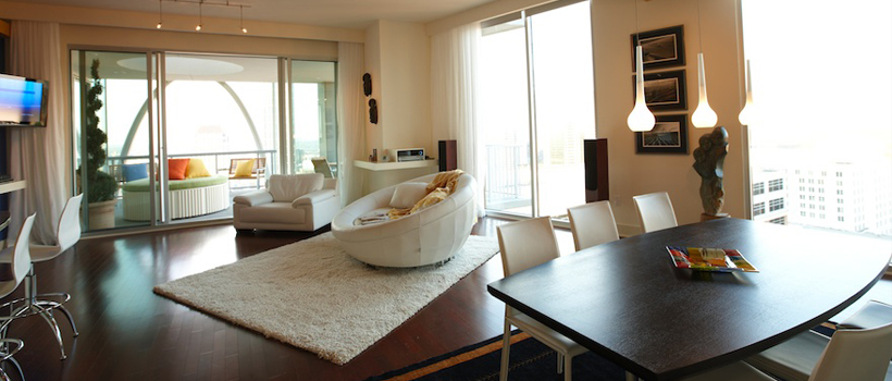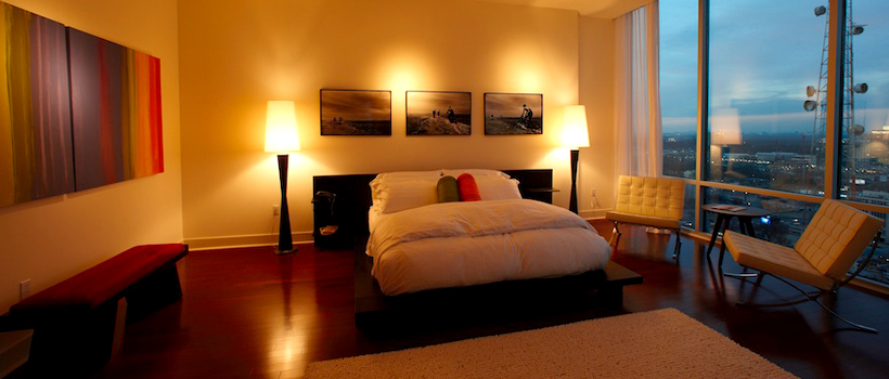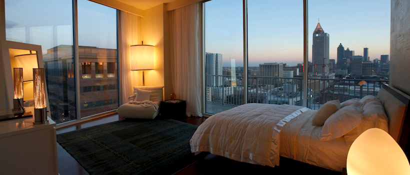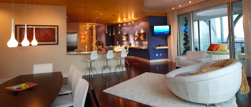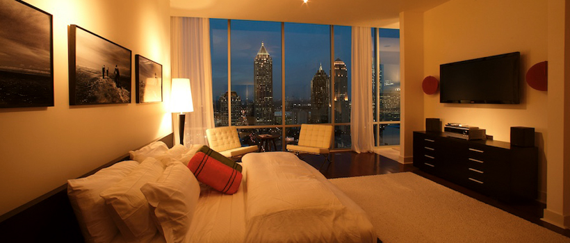 The spectacular penthouse at Aqua Midtown is a vibrant modern design with African accents created by Liveable Lifestyles for luxury rental company Infinito. Atlanta-based Infinito leases fully-furnished penthouse residences to celebrities, athletes and high-level corporate executives in Atlanta on long-term assignments. The three-bed, three-and-a-half bath residence on the 25th and top floor features a private elevator, master bath Jacuzzi and hardwood and travertine floors throughout. Jim Weinberg, creator of Liveable Lifestyles, used prime colors including “sun yellow,” “cobalt blue,” and “burnt orange” to capitalize on the bright natural tones pouring through floor-to-ceiling windows. Transparent draperies underscore the “open air” feel of the penthouse and further enhance “flow” throughout the one-level floor plan.